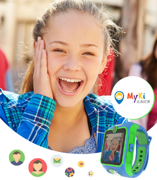 MyKi 4 ist eine wasserdichte Smart Watch für Kinder mit präziser dreifacher Lokalisierung, Zwei-Wege-Sprach- und Videoanrufen und Chat-Funktionen.